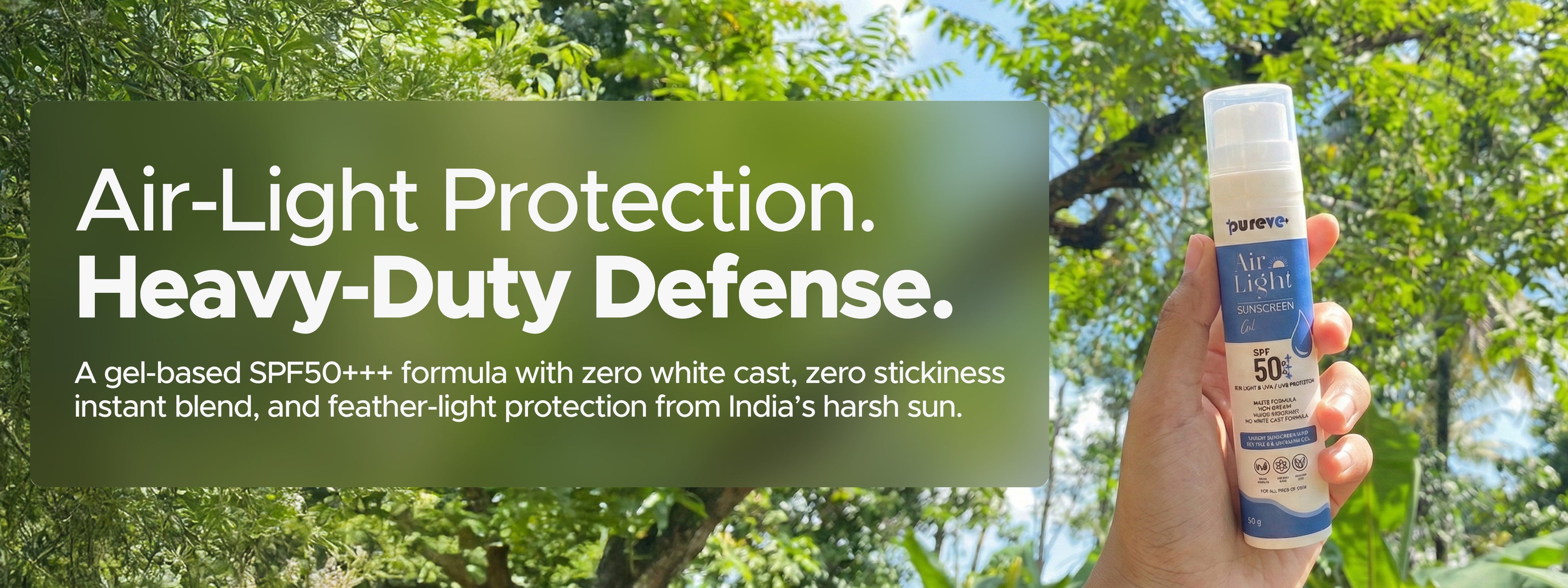 PureVe Airlight SPF 50PA+++ Sunscreen gel with Tea Tree Oil, Vitamin E and DHHB (50 ML)